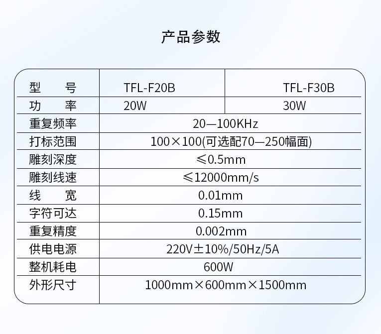 通發激光研發的TFL-F20B激光打標機,金屬材質和塑膠材質均可進行打標加工。本激光鐳雕機光纖激光器、振鏡、軟件、聚焦鏡等核心配件采用原裝進口,性能穩定,壽命是國產器件的1.5倍,是高端客戶的優選。