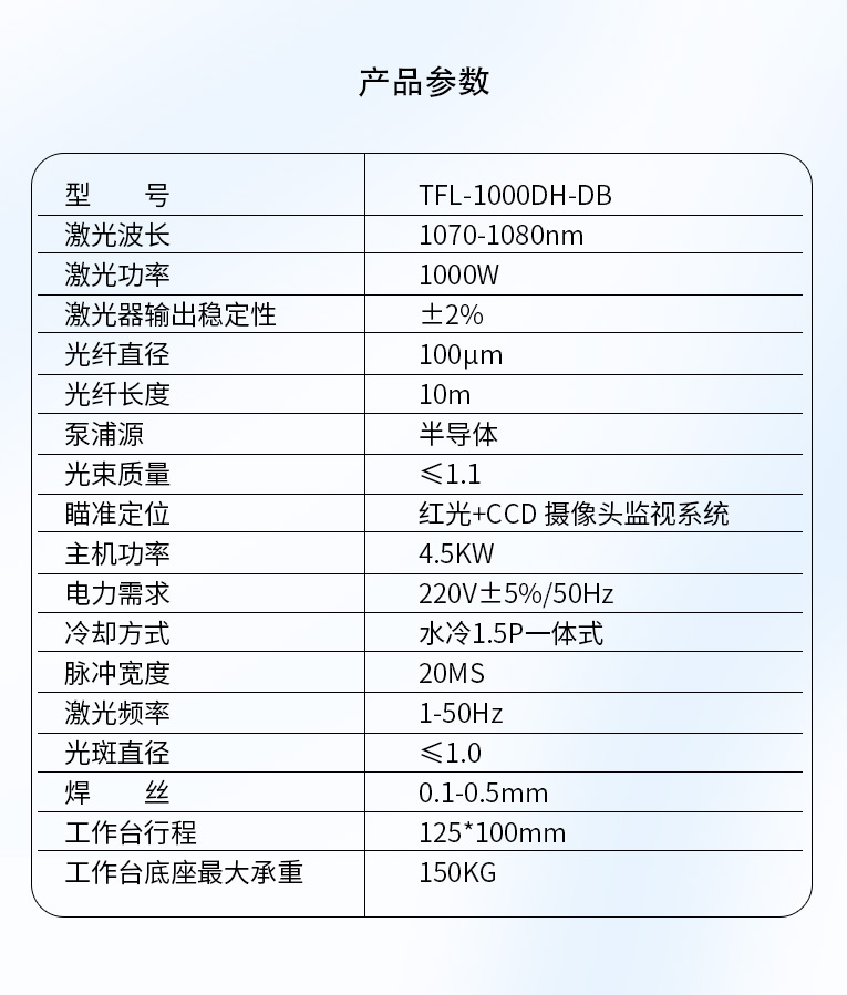 | 激光功率 | 1000W |